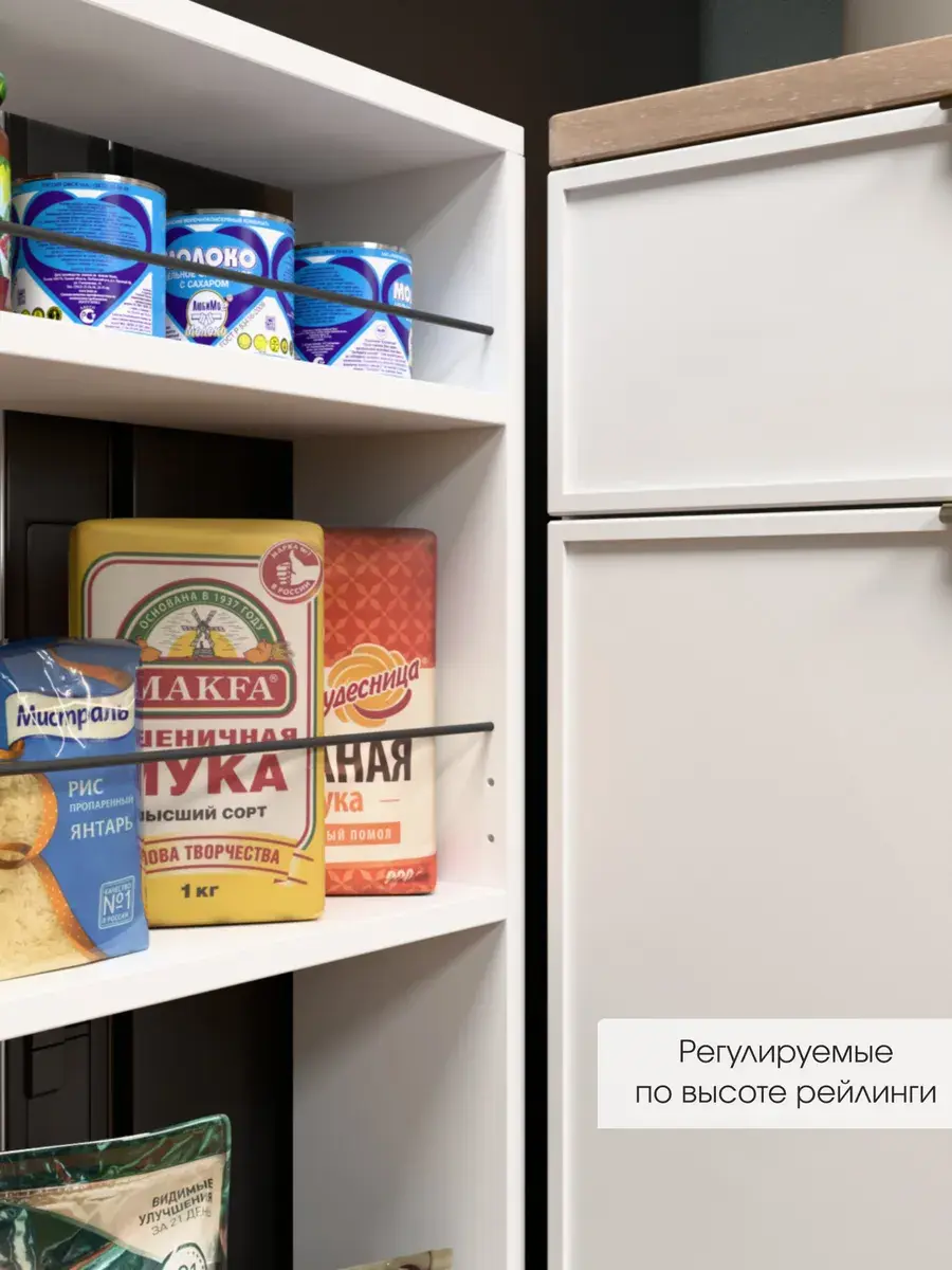 - Хранение продуктов: Используйте верхние полки для хранения консервов, круп и других продуктов.