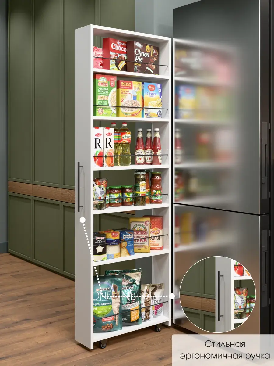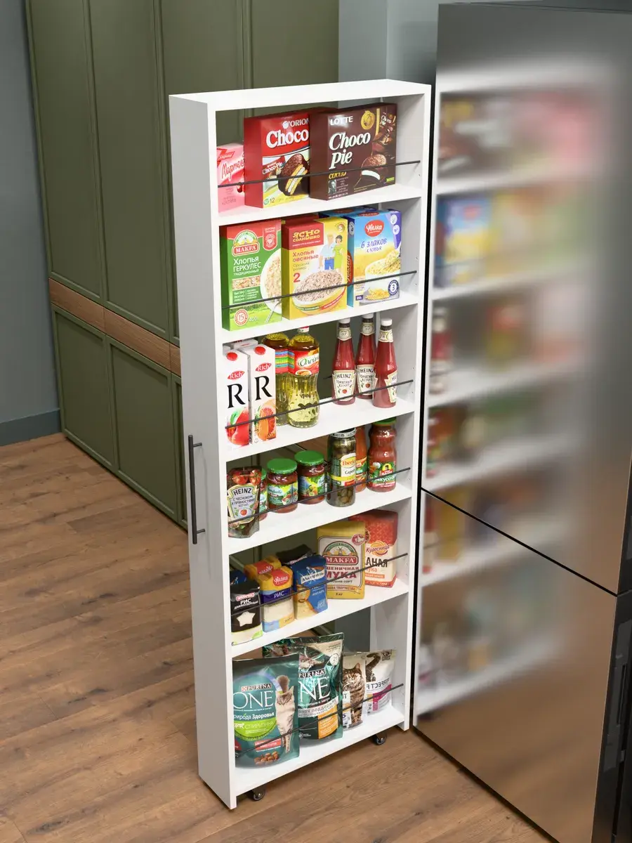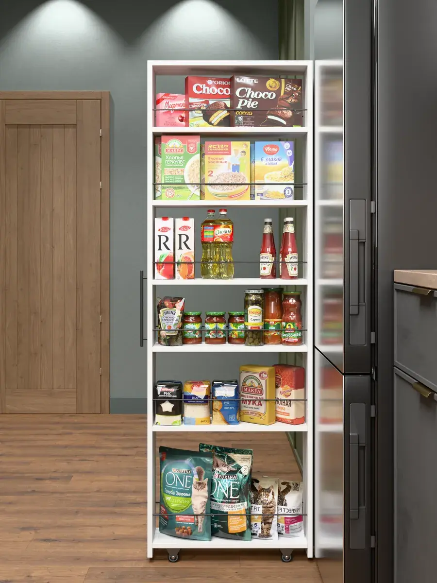 - Многофункциональность: Подходит для хранения различных продуктов, таких как крупы, консервы, специи, масла и другие кухонные принадлежности.
